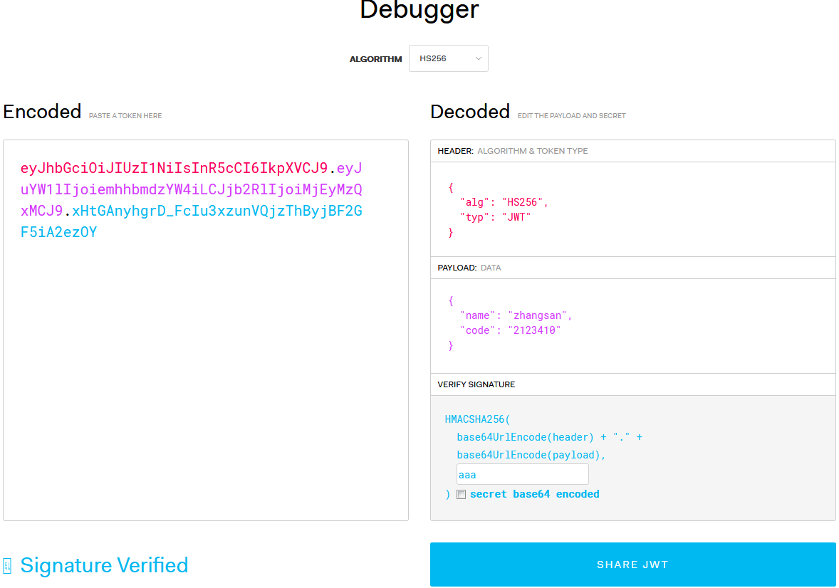 这样我们就获得了我们的密钥,然后将密钥填入密匙位置在官网生成一个新的JWT