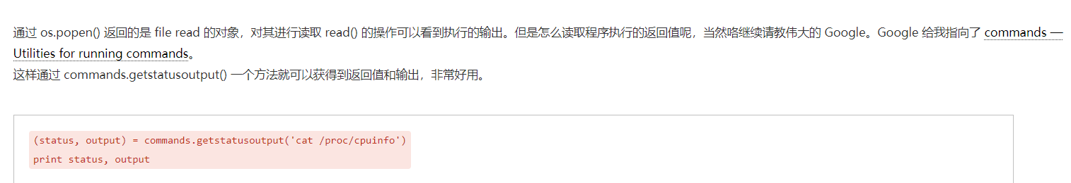 可以使用commands.getoutput()这个函数来进行代替,构造payload
