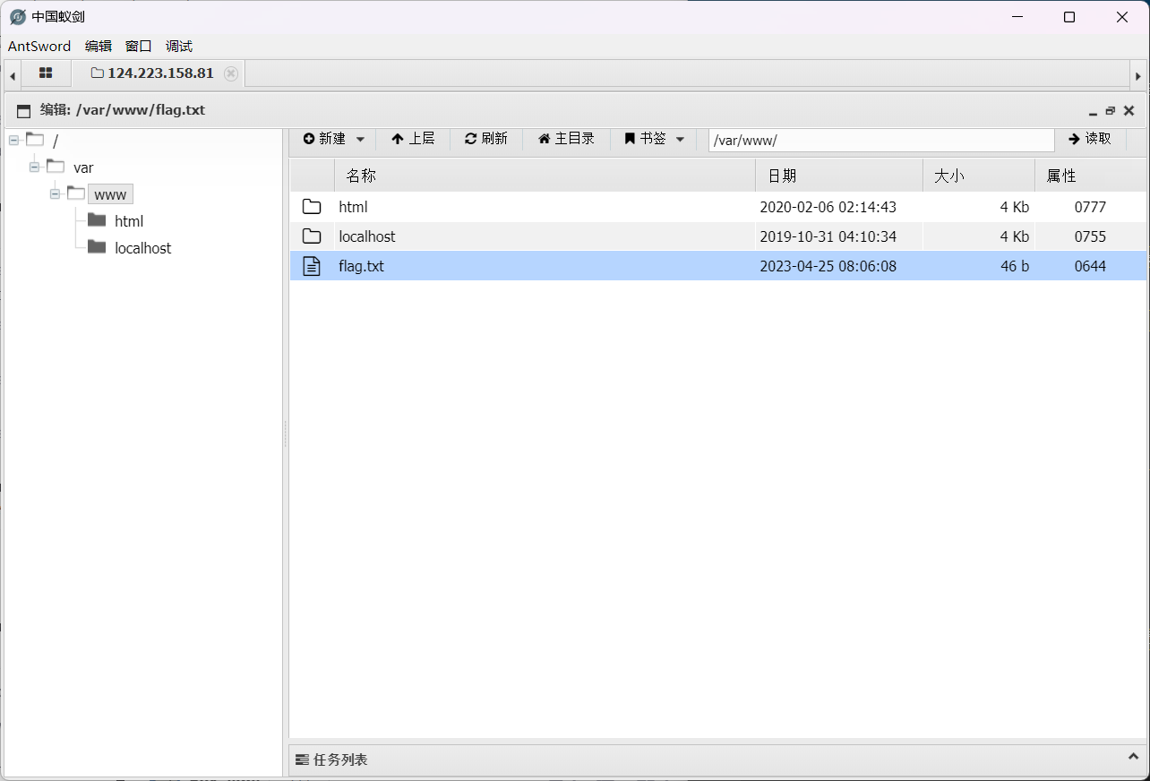 连接后,flag就在网页根目录中 获得flag!
