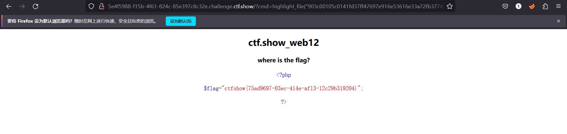 我们试一下第一个php文件 这是我们使用highlight_file()函数显示php文件 获得flag
