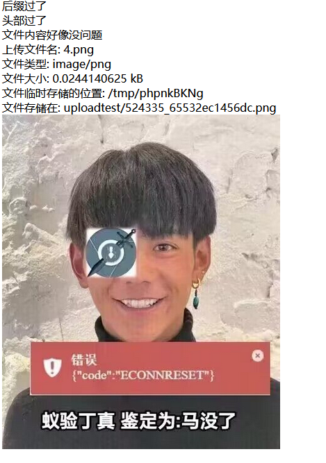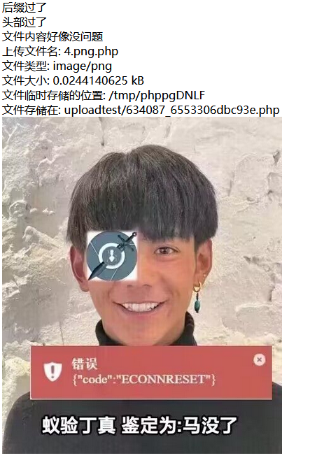 上传4.png 正确的上传方式是这种 要检查后缀,头部,文件内容才能上传 接着回到上面的php png是后缀头部都过,而php只过了后缀,把他们结合一下试试 上传4.png并抓包