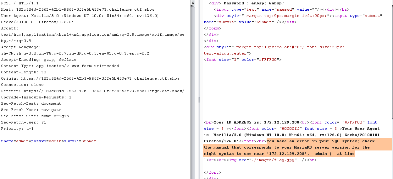 passwd=1&submit=Submit&uname=1" 报错 You have an errorin your SQL syntax; check the manual that corresponds to your MariaDB server version for the right syntax to use near '1" LIMIT 0,1' at line 1