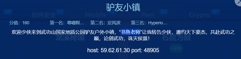 Web 驴友小镇 这道题属于是签到题了,但是那时候并没有意识到npc的重要,一时间没做出来,找框架去了 这题的npc是shuyulaoshi 打开这个文件就好http://59.62.61.30:48905/shuyulaoshi.txt