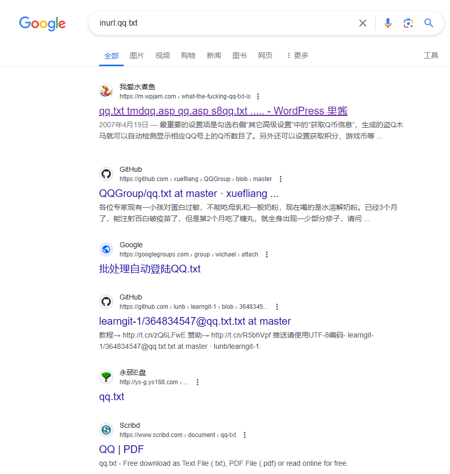 - 搜索引擎挖掘 如:在Google中输入 side:qq.com