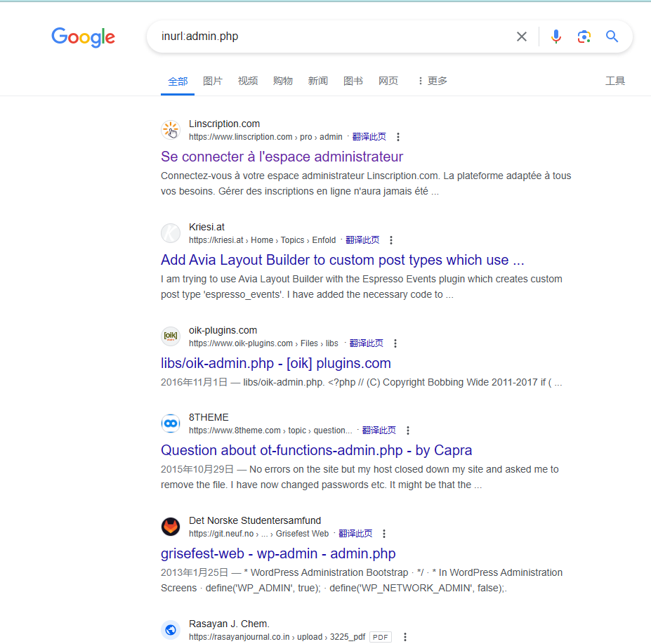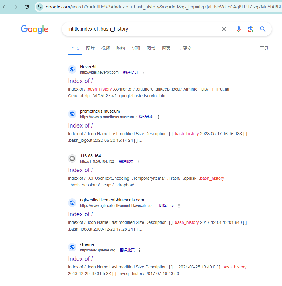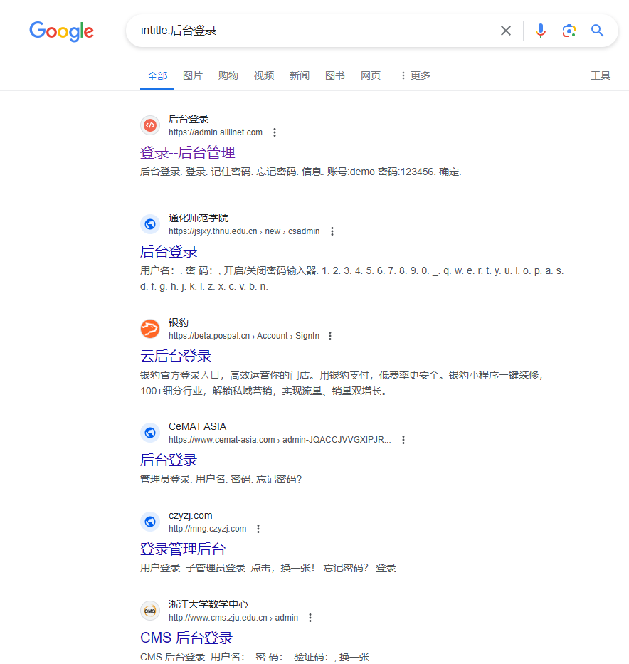 被动信息收集方式是指利用第三方的服务对目标进行访问了解,例:Google搜索
