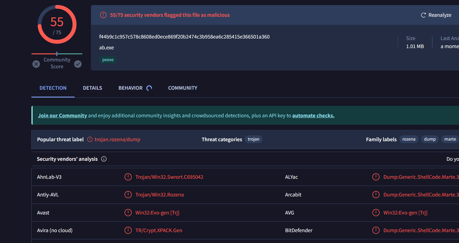 evasion是metasploit自带的模块,使用此模块可以生成反杀毒软件的木马