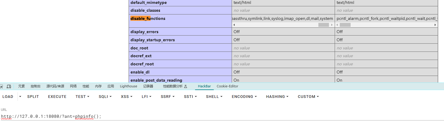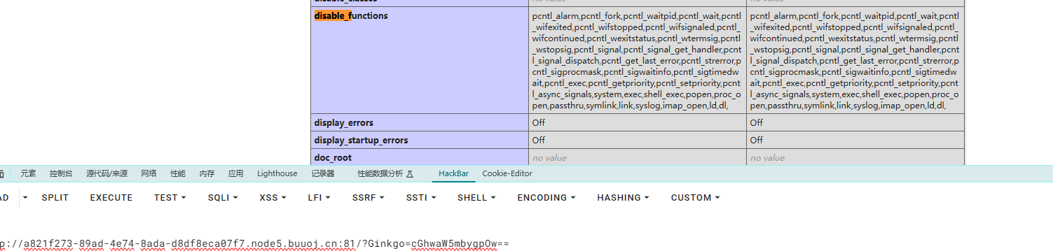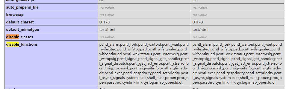 执行phpinfo发现设置了disable_functions