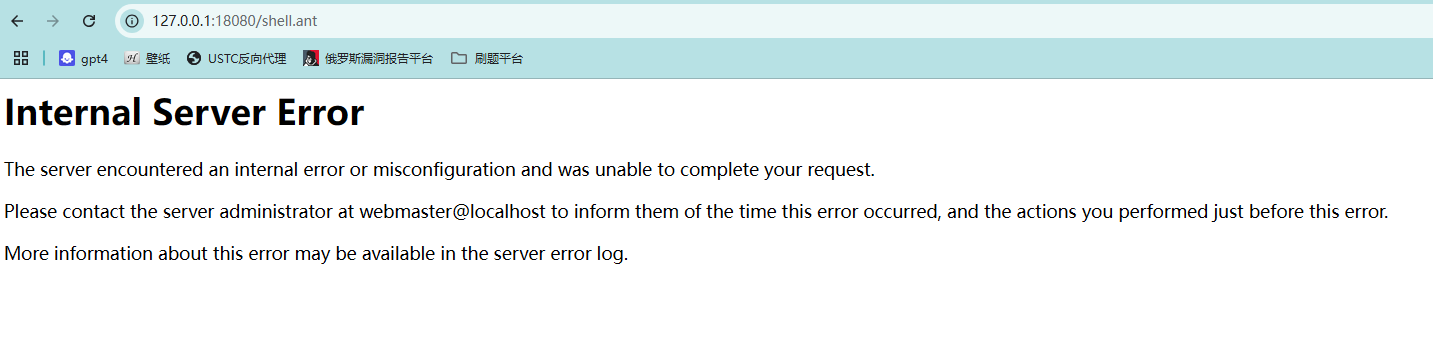 这里我们访问,按理说应该会直接出现执行命令的结果,但是出现了500错误