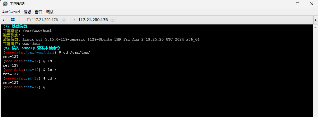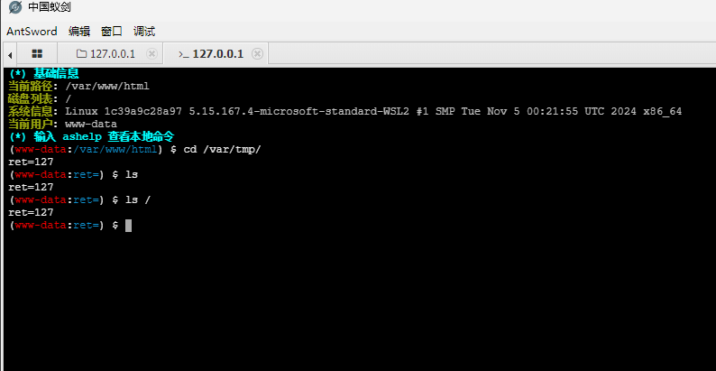 用蚁剑拿到shell后无法执行命令