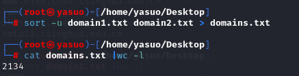 将上面获得的domain1.txt和domain2.txt去重排序后输出到domains.txt中